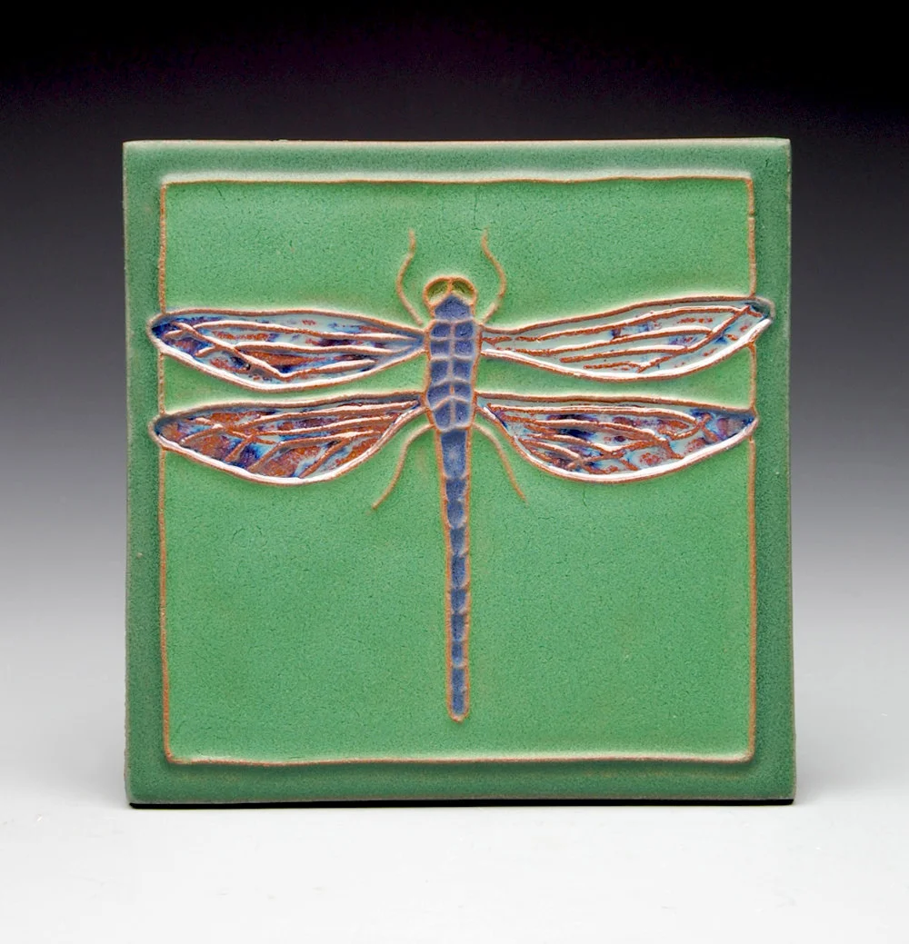 Earthenware cuenca tile. Earthenware glazes. Tile dimensions 6" x 6" x3/8". Hanger applied to the back. Please allow two to three weeks for this item to be ready to ship.